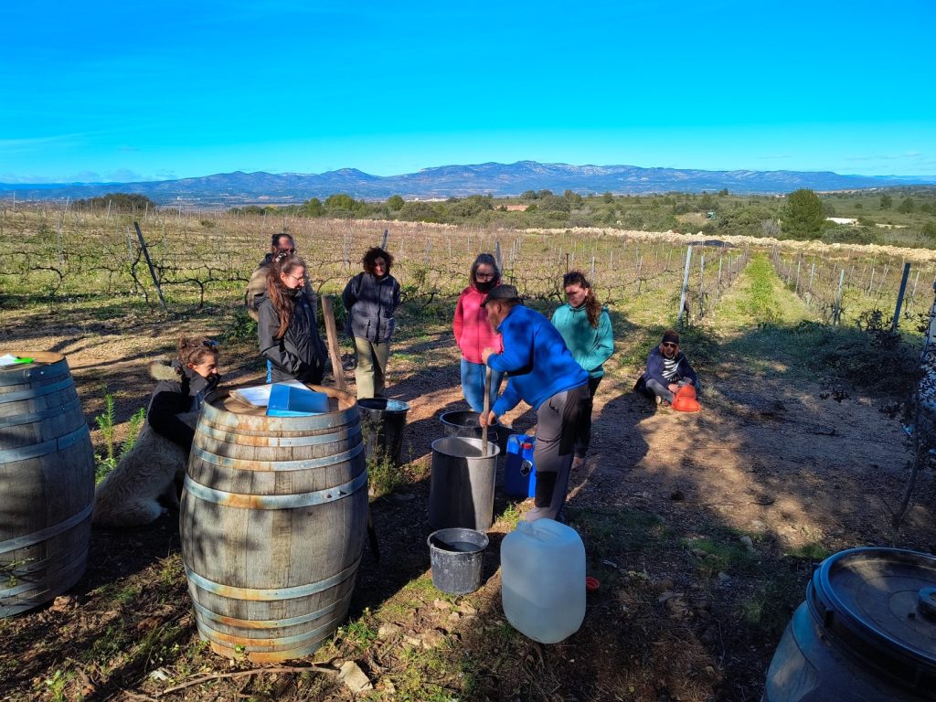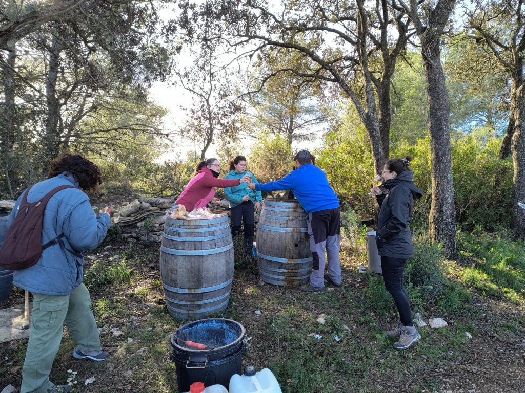 Posteriormente, una fase practica donde se visito nuestra finca «Les argamases» donde las participantes realizaron y observaron diversas practicas tanto para la evaluación del suelo y la preparación de bioproductos. Las practicas realizadas fueron: